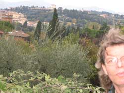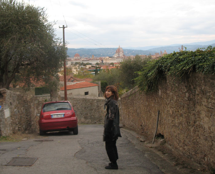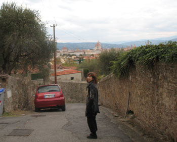 After the sensory overload of Uffizi, intoxicating though it was, I felt I needed a break from all the culture. I suggested we hike up into the hills, which can be done in about twenty minutes in a small town like Florence – it was great! Once we got up into the hills, we could see all the red tiled roofs of Florence down below us, it was the perfect antidote for the tourist jitters.