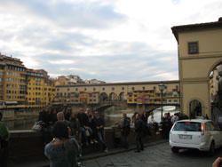 We also walked around to see more sights, such as the Loggia dei Lanzi, which is a fabulous front porch with a load of great sculptures, including Perseus with the(severed) Head of Medusa by Cellini. David no# 2 is right next door in front of the Palazzo Veechio. The Ponte Veechio is a famous bridge with a built-in shopping district which undoubtedly inspired the American strip mall. We crossed the Arno River and walked past the Palazzo Pitti but decided not to go in.