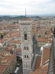 They say it’s 463 steps but it seems more like 4,000 – it’s the Mount Everest of cathedral tours. The architect, Brunelleschi, obviously had not anticipated that his Duomo would one day be invaded by a never-ending stream of rabid tourists – there’s only one narrow stairway up to the top – so the only way up is also the only way down. It’s a fire marshal’s nightmare come true! The stairway is so narrow that you can’t even pass someone on the stairway. One aggressive group has to make its way up or down while another group has to wait on the landing. At times, tourists began to temperamental - it must be hellish during ‘high tourist season.’ I’m not really complaining. I work in the public schools in Brooklyn so I used to climbing a lot of stairs. They wouldn’t make you climb this many stairs in Vegas! In Vegas, they’d have an escalator installed with a wet bar and a cocktail waitress on each landing – and of course, a paramedic standing by in case you overdid it at the all-you-can-eat lasagna buffet.