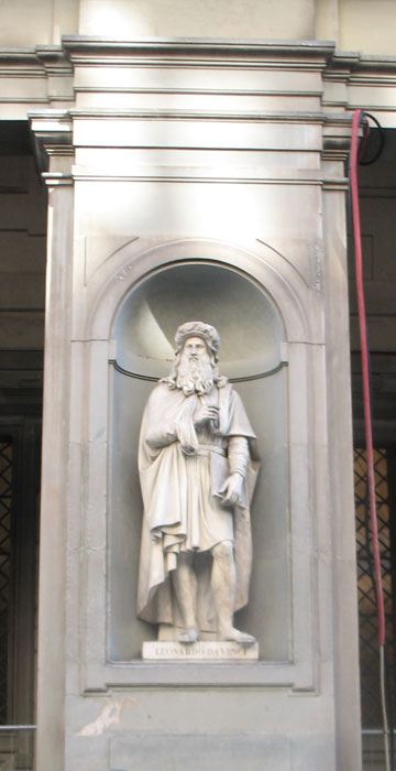 Da Vinci enshrined in a pillar of the Uffizi |