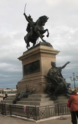 War Hero on a horse and his girlfriend complaining about the weather |