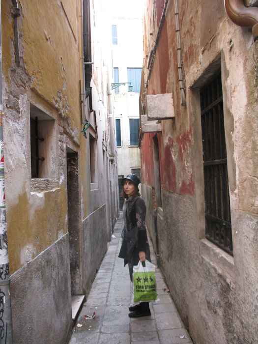 The bus dropped us off at Piazza Roma at around 1:30pm and we were supposed to be on the far side of town by 2pm. Our biggest obstacle was the Grand Canal, which is a giant backwards ‘S’ that snakes around the entire island. There are only three bridges in the city that cross this canal. Looking at the map, I surmised that the Rialto Bridge would be the quickest route. Besides that, Venice was a chaotic jumble of jagged angular streets jutting off in every direction. Happily, when we arrived at our first crossroads, there was a big yellow sign that read Rialto, San Marco and a black arrow underneath.
