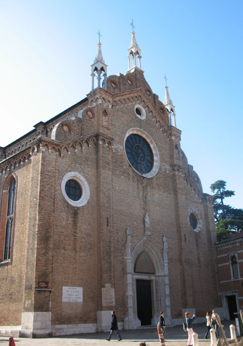Next we boarded a vaporetto, which was like a crosstown bus on water, and traveled up the Grand Canal to the Friari Basilica, which had an incredible amount of art inside – huge paintings and ornate carvings and sculpture everywhere. In the afternoon we strolled to different exhibitions associated with the Venice Bienniale, which is a city wide show that imports art from all over the world.