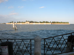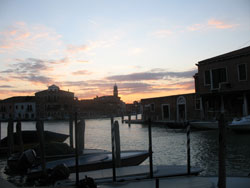 We were also curious to see the print shop (Venice Printmaking Studio) where all these printmakers were working. The shop was located on an island north of Venice called Murano. We took another vaporetto to Murano. On the way, we passed the small island of San Michele, which is a giant cemetery. There’s a lot of famous people buried there including Igor Stravinsky and Ezra Pound. We spent some time at the print shop looking at the prints and then sailed back to Venice as the sun was setting.