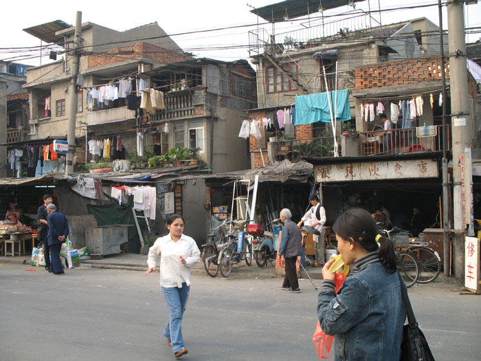 | It was Sunday and Marty's day off. He wanted to take it easy and get together around two. Amy was all good with that but I was restless, as usual, so I took another one of my now legendary hikes. This time I went out in search of Suzhou Creek. How novel, how incongruous, I thought to myself, to have a creek running right through a giant city like Shanghai, with over 13 million people - almost twice as many people as New York City! I have never heard of an American city with a creek in it - either it's a full-blown river with a lot of historical significance or they just pave right over it. I must see this magnificent creek for myself. | Suzhou Creek more photos |