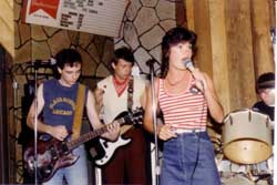 The year was 1982, over 20 years and a million beers ago, so excuse me if the details are a bit sketchy. I guess the band was started by Roy Stanley and myself after another band we were in collapsed. The earlier band, which I don't even remember the name of and may not have even had a name, went through a series of bad lead singers. My favorite one once went into the bathroom in the middle of a song and came dancing out with a sanitary napkin with an adhesive strip stuck on his forehead. I was very impressed. This was in the town of Carbondale, IL, a college town surrounded by farms and wilderness. There were three of us college students and two local guys in the band and these two local guys were having none of this - this singer was just too weird for them! The band got another singer who sang equally out of out-of key but had no crazy antics and the band just fizzled.